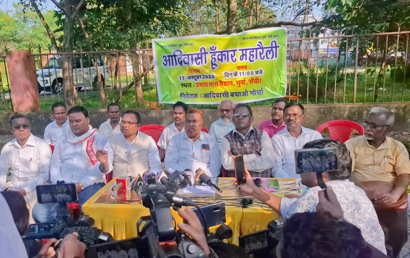 रांची: केंद्रीय धूमकुड़िया भवन में आयोजित संवाददाता सम्मेलन में आदिवासी हुंकार महारैली (17 अक्टूबर 2025, प्रभात तारा मैदान, धुर्वा, रांची) के उद्देश्य, महत्व और तैयारी पर चर्चा करते हुए कुर्मी (कुड़मी) जाति को अनुसूचित जनजाति (ST) में शामिल करने की मांग के खिलाफ आदिवासी समाज की एकजुटता पर जोर दिया गया है। यह महारैली आदिवासी अस्तित्व, अधिकारों और पहचान की रक्षा के लिए एक ऐतिहासिक कदम है। इससे बिंदुवार विस्तृत जानकारी दी गई है।